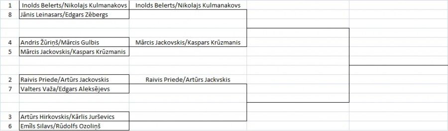 Priede/Jackovskis – Važa/Aleksējevs 2:0 (21:12; 21:19) un 2:1 (19:21; 21:13; 15:13)
