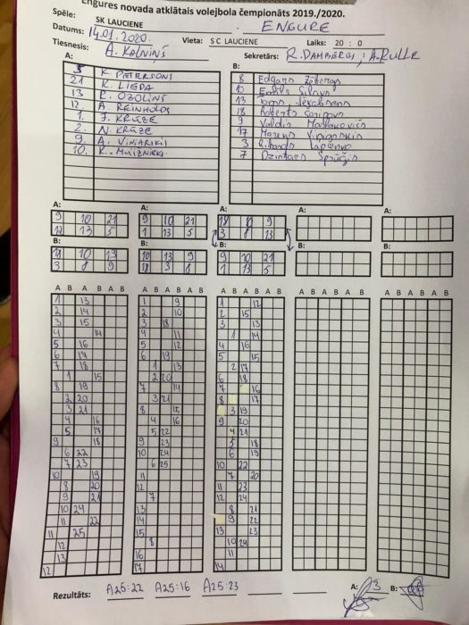 Atsācies volejbola čempionāts 14.01.2020. Pēc jaunā gada pārtraukuma atsācies volejbola čempionāts ar divām spēlēm. SK Lauciene – Engure 3:0 (25:22, 25:16, 25:23) Irlava – SK Slampe/ZeVid 3:1 (28:26, 25:15, 21:25, 25:22)