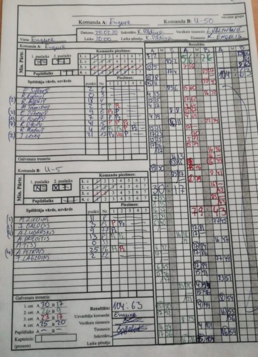 Tukuma sporta skola – Zariņš 24, Helmanis 9, Larsens 9, Lubarskis 7, Tīss 6, Jakubovskis 2, Briģis 2, Krupinskis, Kurmahers.