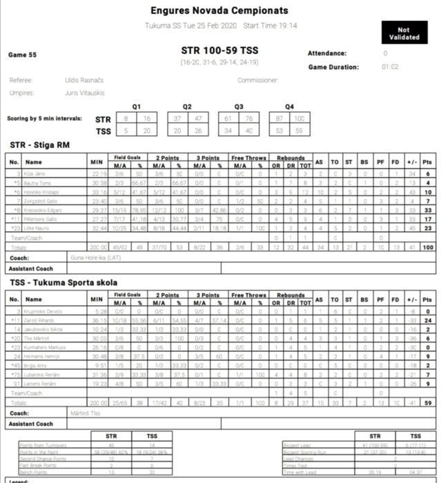 Stiga RM/Tukums – Krasovskis 33, Litke 23, Pētersons 17, K.Horeliks 10, Zvirgzdiņš 7, Kūla 6, Bautra 4 punkti.