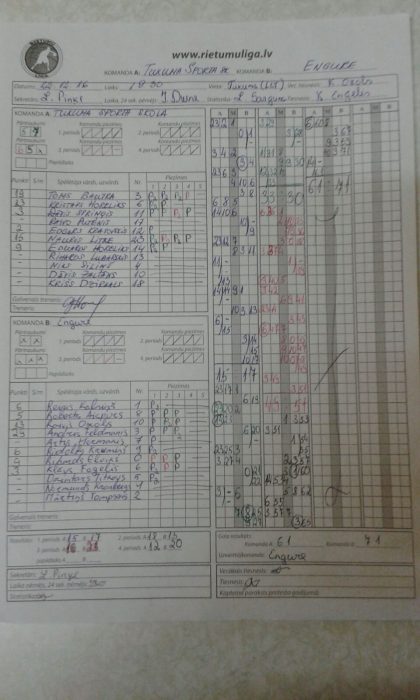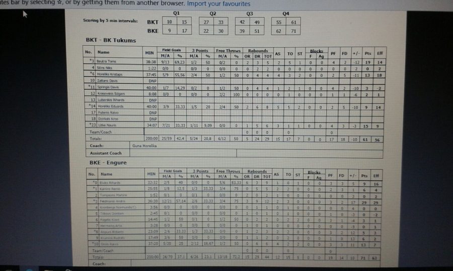 Tukuma sporta skola – K.Horeliks 23, Bautra 19, Litke 15, E.Horeliks 9, Spriņģis 3, Krasovskis 2, Siliņš 0 punkti.