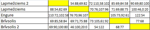 Engure – Ozols 27, Litke 25, Silavs 18, Feldmanis 14, Aispurs 13, Račuks 6 punkti.