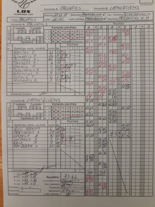 Lapmežciems – Meržvinskis 19, A.Ločmelis 10, Kanderāts 10, Egle 9, E.Ločmelis 8, Zirnītis 6.