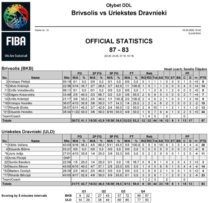 19.aprīlī Smārdē tika aizvadīta otrā ceturtdaļfināla sērijas spēle Olybet Entuziastu Darba dienu līgā, kur tikās Brīvsolis un BK Uriekstes Dravnieki. Jāatgādina, ka sērijas pirmajā spēlē Rīgā uzvaru izcīnīja šīs spēles viesi.