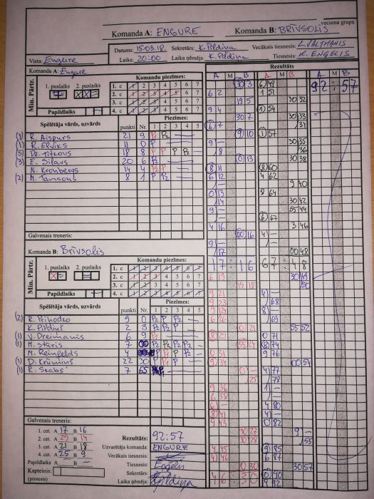 Brīvsolis – Krūmiņš 22, Prihodko 9, Stūris 7, Skabs 7, Dreimanis 6, Reinfelds 4, Pildiņš 2 punkti.