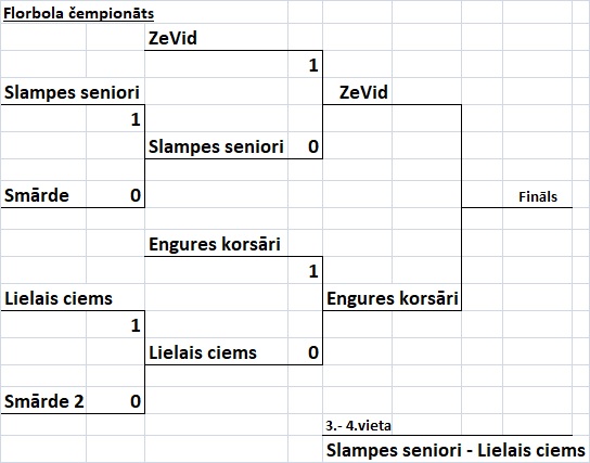 Slampē aizvadītas pusfinālu cīņas florbola čempionātā, kurās uzvaras izcīnīja un nopelnīja vietu finālā abas līderkomandas pēc regulārā turnīra – ZeVid un Engures korsāri.