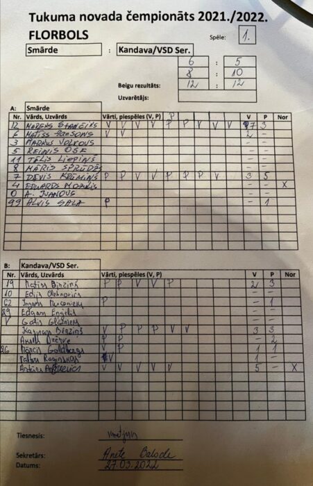 Engurē aizvadīta Tukuma novada florbola čempionāta spēle, kurā tikās Smārde un Kandava/VSD Serviss komandas.