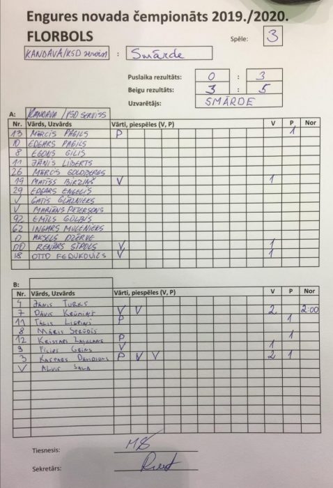 Smārde – Krūmiņš 4, Sprūdžs 2, Grīns 2 vārti.