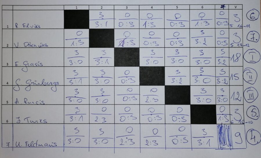 Smārdē aizvadīts galda tenisa čempionāta posms, kurā uzvaru izcīnīja Edgars Grasis, aiz sevis atstājot Gintu Grīnbergu un Arti Runci.