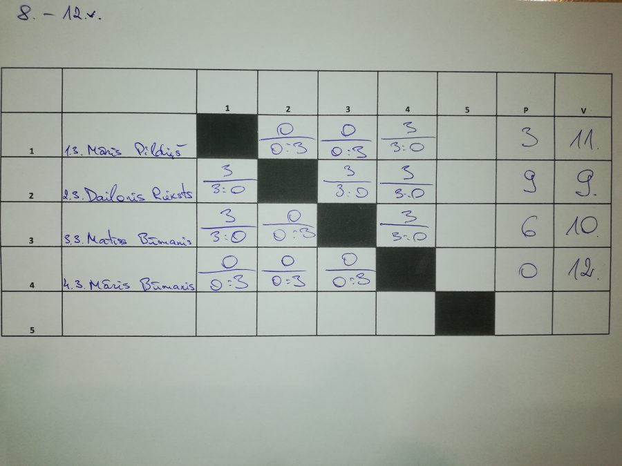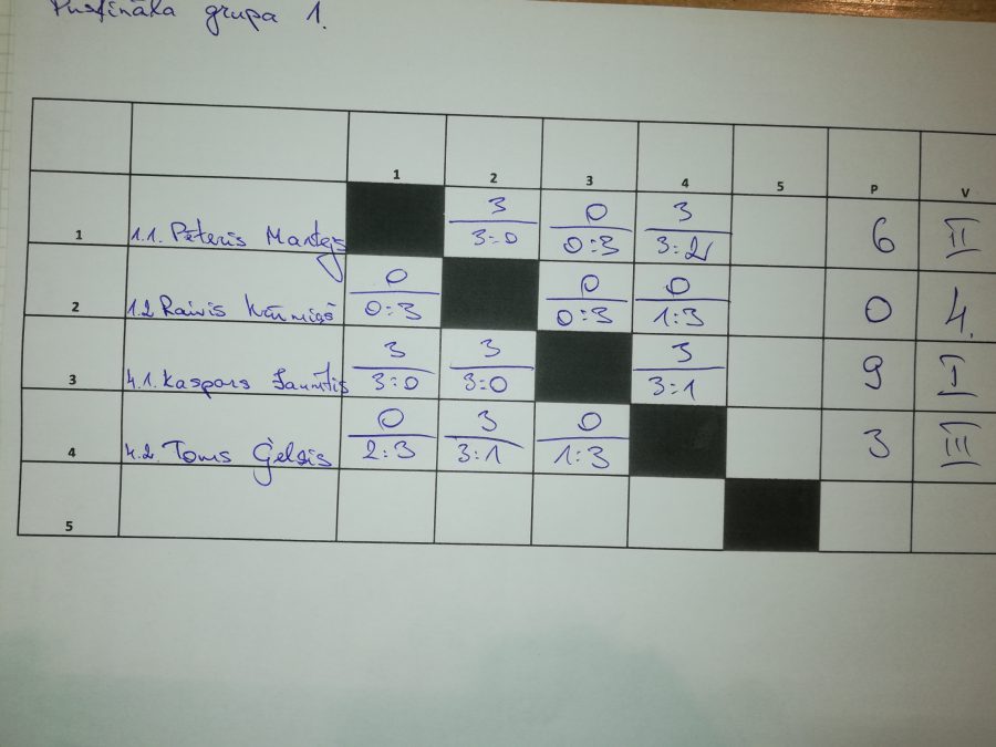 Aizvadīts 5.posms galda tenisa čempionātā, kurā uzvaru svinēja Kaspars Jaunītis, otrais bija Pēteris Mantejs, bet trešais Uldis Feldmanis.
