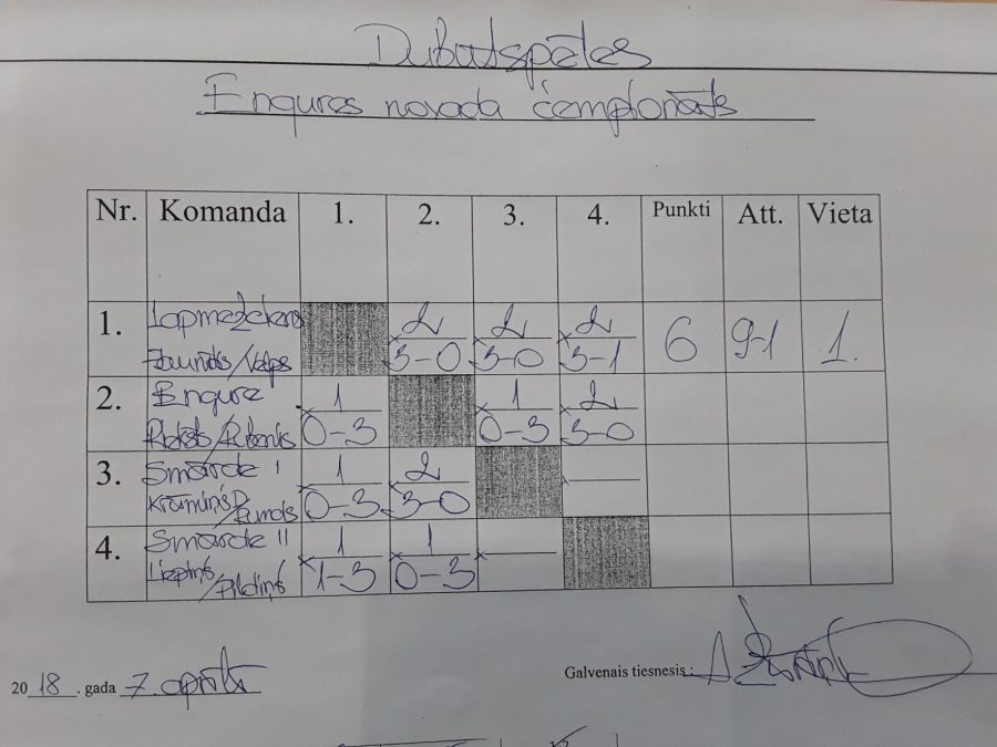 Kā arī tika aizvadītas sacensības galda tenisa dubultspēlēs, kurās pirmo vietu izcīnīja Lapmežciems (Kaspars Jaunītis un Normunds Velps), otrie palika Smārde (Dāvis Krūmiņš un Artis Runcis), bet trešā vieta Engurei (Dailonis Rieksts un Modris Rubenis).