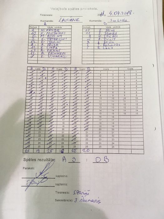Lauciene – Smārde 3:0 (25:19; 25:16; 25:20). Sērijā 1:0!