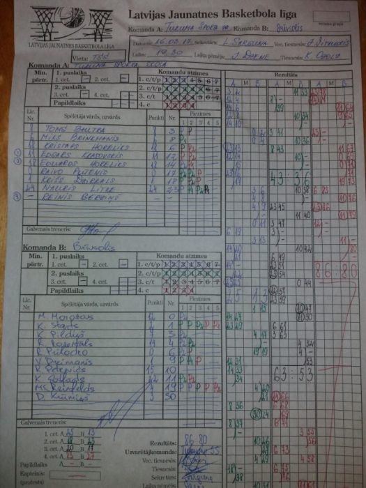 Tukuma sporta skola – Litke 24, E.Horeliks 18, K.Horeliks 18, Krasovskis 11, Bautra 8, Brinkmanis 6, Dzirkals 1, Putenis 0 punkti.