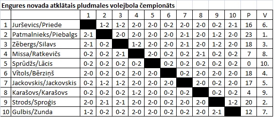 Noslēdzies pludmales volejbola regulārais turnīrs virslīgā 02.07.2018. Pēdējās spēles rezultāts: Karašovs/Karašovs – Sprūdžs/Lācis 2:0 (21:15; 23:21)
