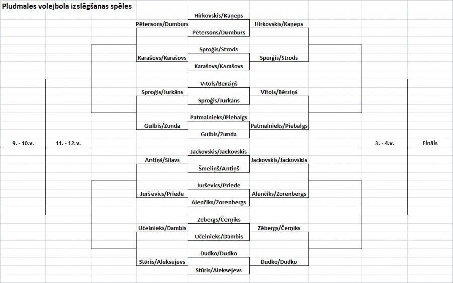 Jurševics/Priede – Alenčiks/Zorenbergs 2:1 (21:19; 21:23; 15:10) un 0:2 (11:21; 16:21). Sērijā 1:0. Zelta sets – 8:15!