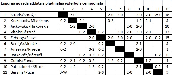 Pludmales volejbola turnīra tabula