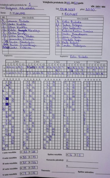 Sieviešu volejbolā piecu setu cīņā uzvara Engurei 08.11.2019. Dāmu volejbola čempionātā aizvadīta piecu setu cīņa Engurē, kur vietējā Engures komanda uzņēma Tukuma komandu. Engure – Tukums 3:2 (25:23, 19:25, 22:25, 25:11, 15:9)