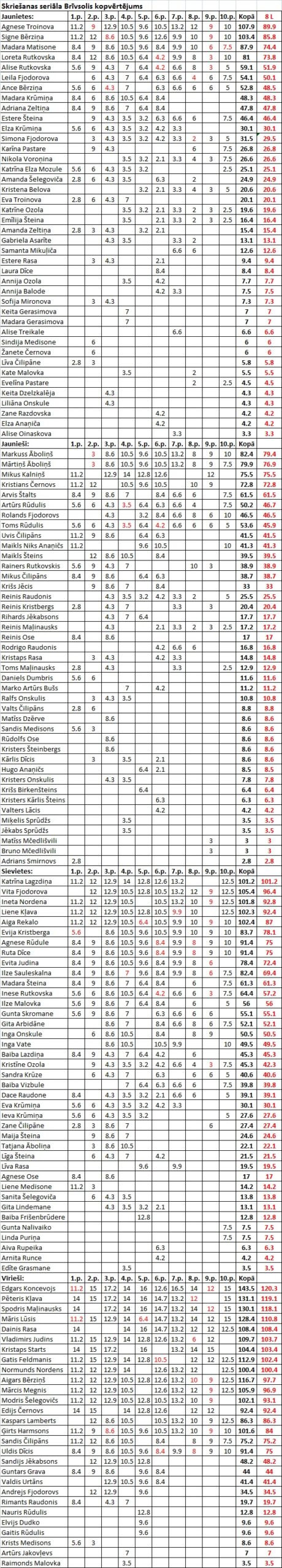 Skriešanas seriāla Brīvsolis kopvērtējums pēc 10 posmiem!