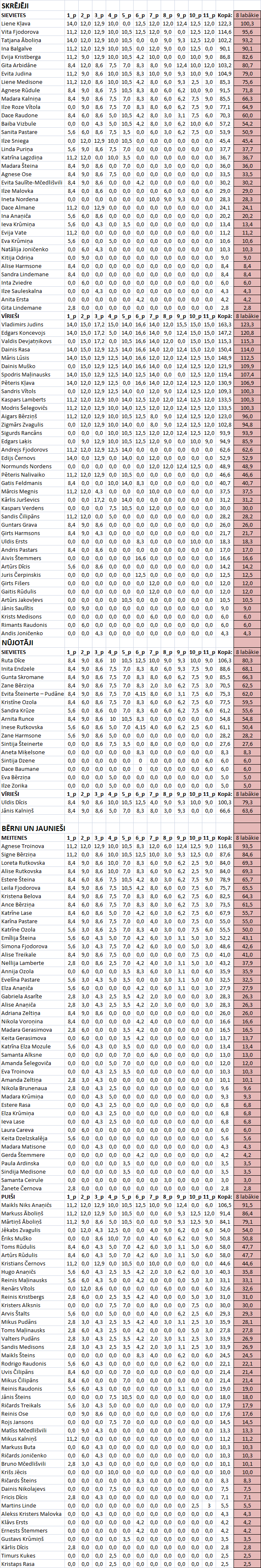Skriešanas seriāla Brīvsolis kopvērtējums pēc 11 posmiem