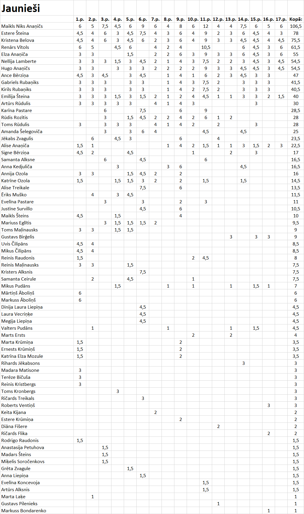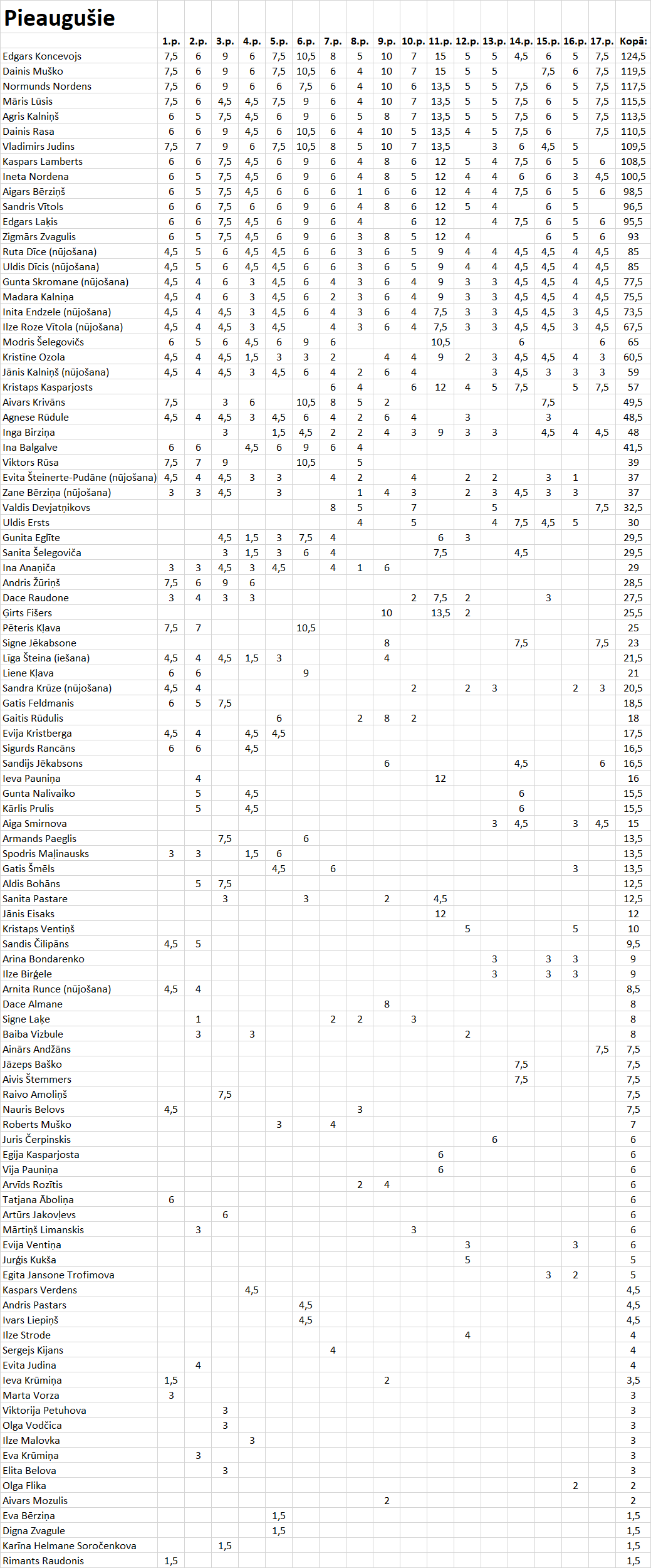 Skriešanas seriāla Brīvsolis kopvērtējums pēc 17.posmiem!