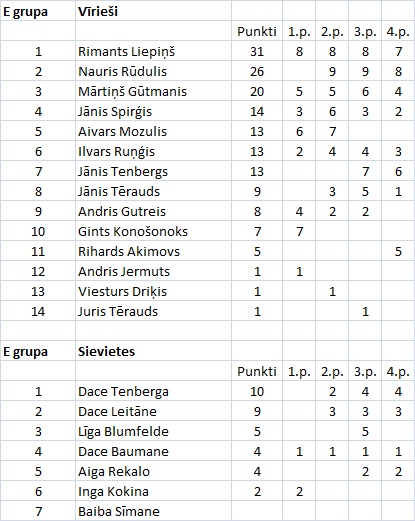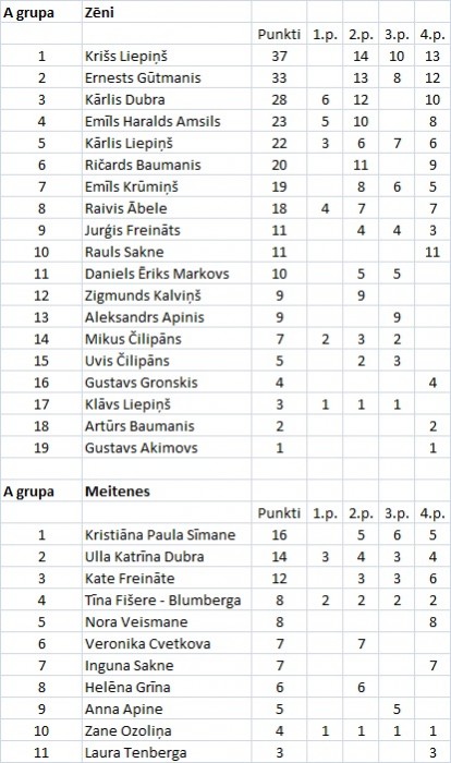 Skriešanas seriāla kopvērtējums pēc četriem posmiem