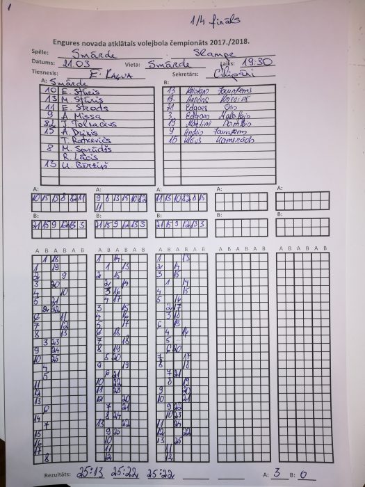 Smārde – Slampe 3:0 (25:13; 25:22; 25:22). Sērijā 1:0.