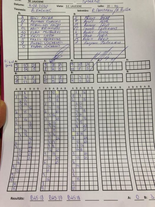 Smārde uzvar Laucienē 04.02.2020. Volejbola čempionātā aizvadīta spēle Laucienes sporta centrā, kur vietējā SK Lauciene komanda uzņēma Smārdes komandu. SK Lauciene – Smārde 0:3 (18:25; 19:25; 18:25)