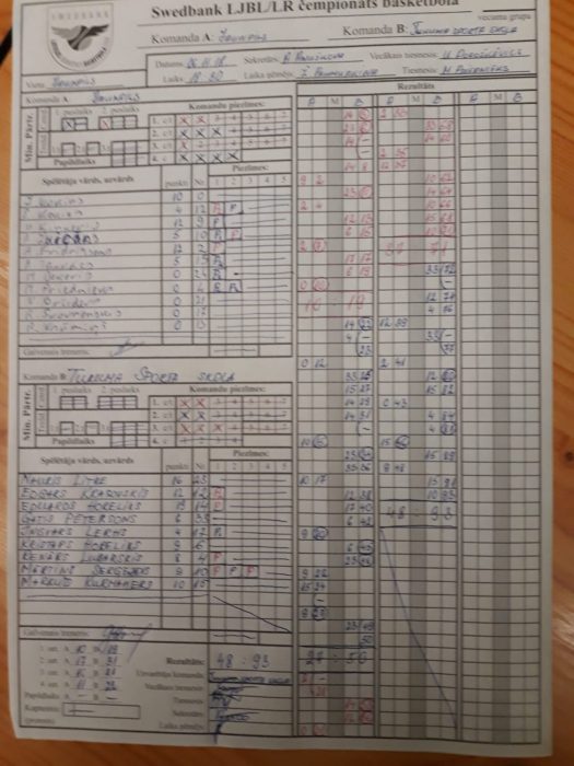 Tukuma sporta skola uzvar Jaunpilī 07.11.2018. Basketbola čempionāta spēle aizvadīta Jaunpilī, kur tikās Jaunpils un Tukuma sporta skola. Jaunpils – Tukuma sporta skola 48:93