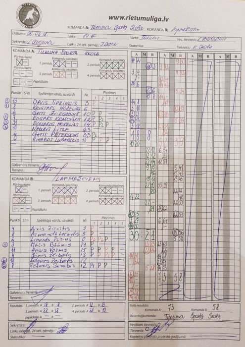 Tukuma sporta skola – E.Horeliks 31, Spriņģis 13, Litke 10, K.Horeliks 8, Krasovskis 7, Zvirgzdiņš 2, Pētersons 2, Lubarskis.