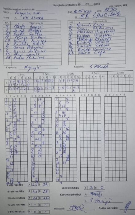 VK Sloka – SK Lauciene 3:0 (25:17, 25:18, 25:20)