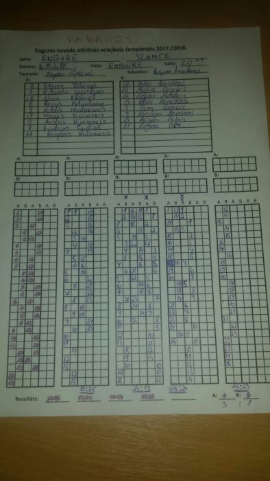 Volejbolā uzvara Engurei 16.11.2017. Engurē aizvadīta volejbola čempionāta spēle, kurā tikās Engure un Slampe. Engure – Slampe 3:1 (19:25; 25:19; 25:20; 25:23)